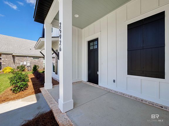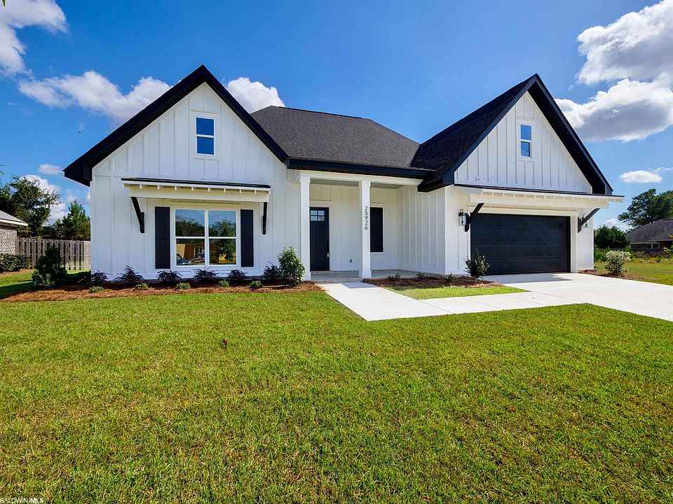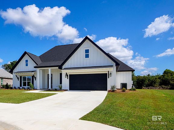 Precious custom new, Gold Fortified farmhouse-meets-cottage home by local builders, ARK Builders. Builder is offering a buyer incentive of $10,000 towards closing costs, buy down of rate if acceptable offer by December 31, 2023. Located in Bailey Place Subdivision (12 lot, one street subdivision) in the community of Belforest in Daphne. It has 1.5 stories with a double, front entry garage. The primary bedroom, bedroom 2 and laundry room are downstairs and bedrooms 3 and 4 are upstairs sharing a "Jack-n-Jill" bath. Highly durable medium wood laminate through the home with tile in the baths and laundry. Extensive trim work including shiplap and custom shaker style cabinets. Stainless steel appliances, irrigation system in front & back yards, tankless water heater. Centrally located for ease of commute to I-10, the Causeway, shopping, dining and the beach. All features including the design of this plan and design choices hand selected and well thought out. Also, the empty lot beside the home is the neighborhood's common area. The listing agent is a licensed real estate agent in the state of Alabama and is a member of the selling entity.