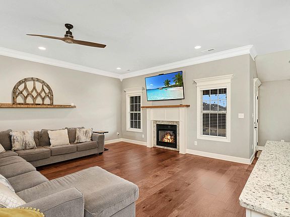 - Features: 10’ + Ceiling, Ceiling Fan(s), Crown Molding, Fireplace, Recessed Lighting, Smooth Ceiling, Wood Floor
