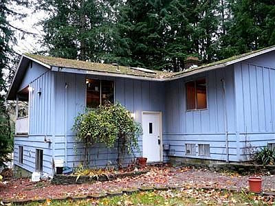 Bank-approved price. Large home on very private, dry and level 1.1 acre lot w/trees. Features large open interior spaces, plenty of bedrooms and a covered deck. Detached garage with huge shop. Plenty of RV parking. Lots of potential, but needs some cleaning, updating & repairs. Convenient location for commuting in a quiet neighborhood of better homes. Don't miss this diamond-in-the-rough!