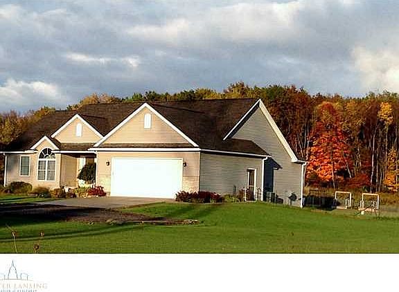 Gorgeous 2004 ranch on quiet tree-lined Gould Rd. Eaton Rapids Schools. Open floor plan- impressive great room-plush carpeting, hardwood floors, maple kitchen, vaulted ceilings, split bedroom plan.
