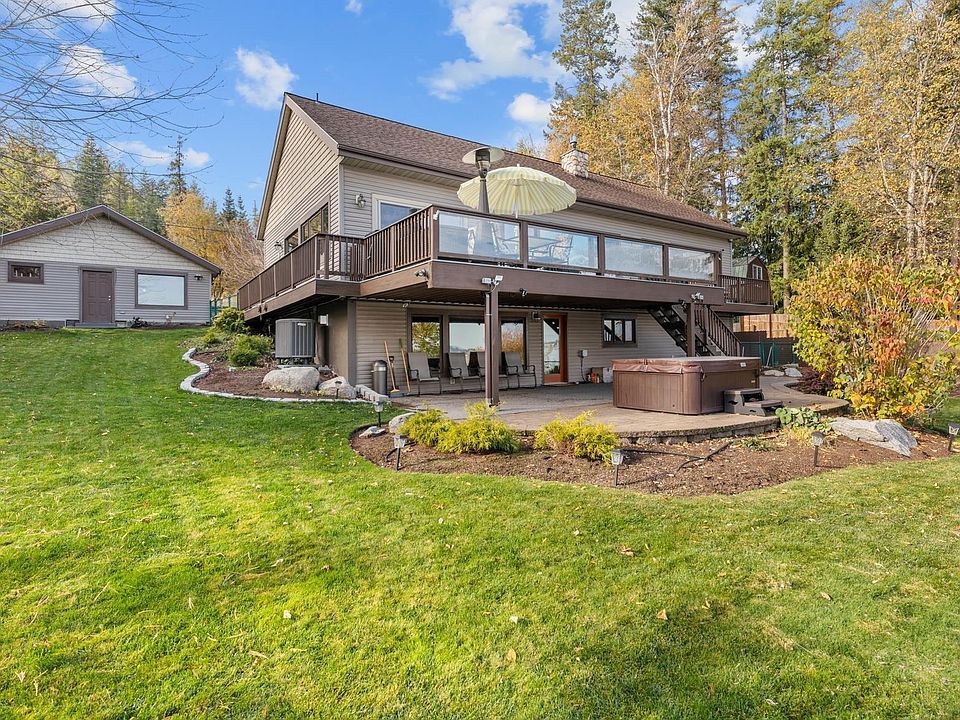 Rarely Available Murphy Bay waterfront home with 116' of frontage! Amazing 180 degree water, mountain and city views from this well-appointed two-level home on double waterfront lots. Sandy beach and large dock with a new boat lift. Contemporary open concept with water views from nearly every room. Home remodeled in 2020. Upgrades include smart features, Vyve broadband, LVP flooring, recessed lighting, tankless water heater, window tinting and remote blinds to name a few. Kitchen boasts new stainless steel appliances with plenty of storage plus opens to the dining and living room. The large en suite master opens to the wrap around deck and includes a walk-in closet, large tub and shower. Beautiful fireplaces on each level give warm inviting spaces to entertain or relax. The lower level contains two bedrooms, full bath, large laundry and utility room with dog bath/storage. Lower family room with great views plus opens to the covered patio with the new spa steps away. Oversized garage including a shop area, work bench and plenty of storage for toys. Minutes to town by boat and car with close proximity to hiking and walking trails. A premium waterfront escape!