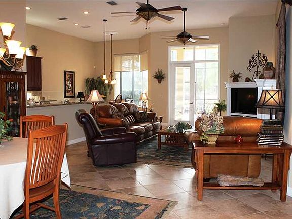 Gorgeous 3 bedroom/3 full bath free standing home in the beautiful Mission Inn Country Club. Granite countertops throughout, open floor plan, tiled with carpet in the bedrooms. Large screened in lanai with heated pool and spa. Extra refrigerator in the oversized two-car garage with room for a golf cart. Washer and Dryer provided. Looking out onto the 10th green on Las Colinas, one of Mission Inn's two 18-hole courses, this home is in a very serene area. The club provides 3 restaurants, tennis courts, a spa, and a fitness center. Mission Inn also boasts its own Marina and trap shooting range.owner pays lawn service