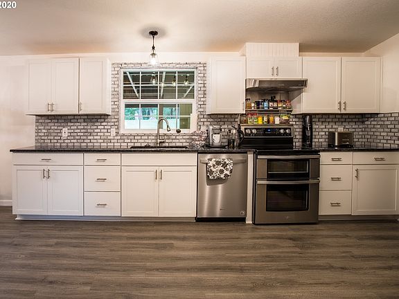 Private setting, completed updated w/new white cabinets, granite, walk-in panty & SS appliances in kitchen. Master w/large w/in tile shower & flr, granite counter w/2 undermount sinks. Great-rm w/built-ins & French drs to bonus rm (not in sq ft) w/vaulted ceilings & view windows. Waterproof plank flring throughout most of hm, new windows, drs, elect, plumbing, gutters, siding septic & heatpump. Fruit trees, sprklrs, chick coop. RV parking w/water, sewer & electric hook-ups. 25X35 shop or barn.
