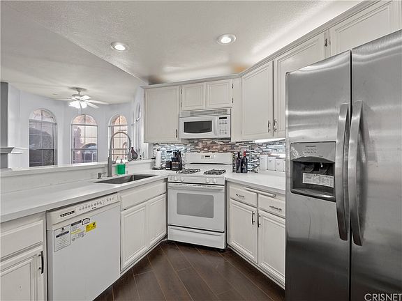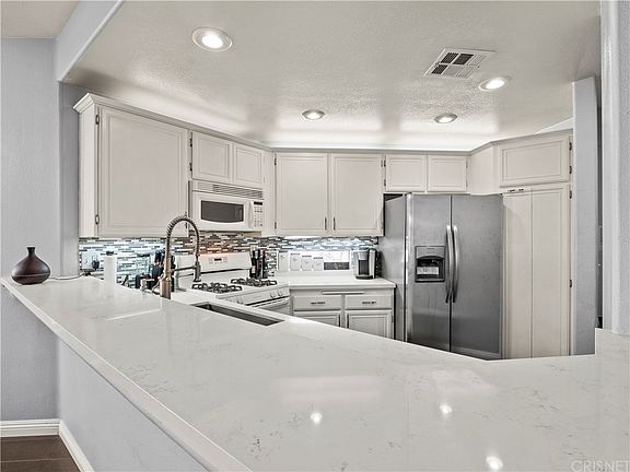 This 2 bedroom 2 bath lower unit is in the heart of the Stevenson Ranch Crown Villa's, a sought after gated community. It features 2 patio's, it's own laundry area and an attached 1 car garage and 1 covered carport space right in front of the garage. The kitchen has quartz counter tops and a beautiful backsplash to compliment. Newer floors, a nest thermostat, a Ring doorbell just a few things to mention. It has close freeway access only minutes away from the Valencia Town Center. Last but not least the surrounding schools are great with a 10/10 grade!