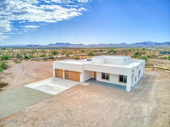 New stunning custom home built 2023. An absolute must see! Move-in ready. Horse Property. Quality features and bright interior and exterior appearance. Located on a 1.8 acres lot surrounded by panoramic views, enriched by breathtaking sunsets and sunrises and by the majestic mountain range in the distance. 4 spacious bedrooms, 2.5 bathrooms. The gorgeous home is designed down to the smallest detail thanks to elegant touches that predominate throughout the entire house. Grand open space with 14 feet ceilings. Ceramic 4'x2' white elegant tile in the whole home. Brushed limestone tile in master bedroom. One-of-a-kind and full of character kitchen with solid wood alder cabinets and white glass appliances included.
