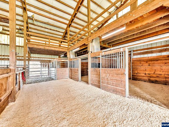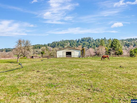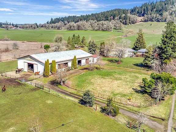 Equine DREAM property! W/in 10min of Eugene, yet private/peaceful. Designed for easy care. 60X96 indoor arena, 6 matted stalls w/ individual runs, heated tackrm & hay loft w/ feed chutes. Perimeter fenced w/ 6 easily accessed pastures. Outdoor roundpen, riding trails & seasonal creek. Trailer pull-through driveway & RV hookups. 24X48 & 19X19 shops. Quaint 2bed, 1bath farmhouse is a charmer! Newer heatpump, electrical panel & roof! ADDITIONAL 264 SQFT "bunk house" makes great 3rd bedrm. Come see!