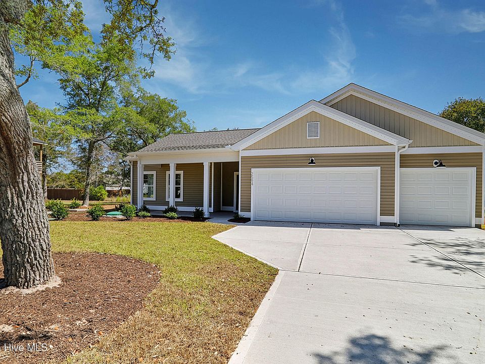 Welcome to your brand-new coastal retreat in the charming Intracoastal waterfront community of Sea View! This beautifully constructed 3-bedroom, 2.5-bath home features a spacious 3-car garage and includes two additional lots (2604 & 2610 Bellamy Drive) — offering extra space and flexibility for future use. Step inside to discover a bright, open floor plan with luxury vinyl plank (LVP) flooring throughout, perfect for coastal living. The modern kitchen showcases classic white shaker style cabinets, quartz countertops, a large center island, subway tile backsplash, walk-in pantry, and stainless steel appliances—designed for both style and functionality.