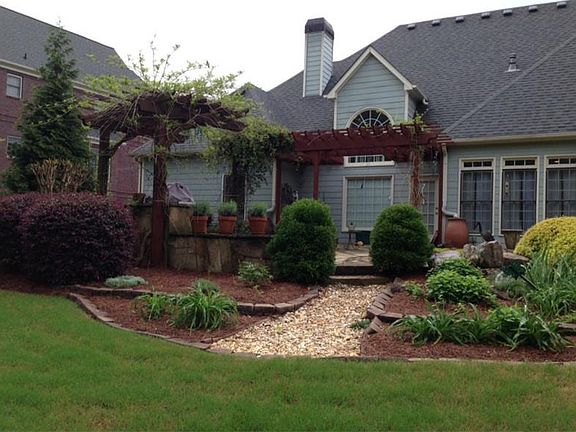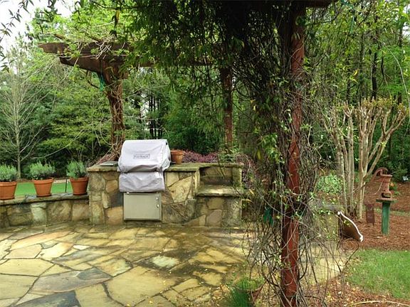 Three sided Brick with 3 car Garage. Hardwoods throughout home. Master on the main with fireplace, double trey ceiling, his and her custom closets . Kitchen with granite counter tops with view to two story family room with fireplace. Private backyard with outside kitchen and pergola. Level driveway.