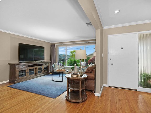 This simply stunning, updated, single story home in Castro Valley boasts all the charm! Spacious 3 bedrooms, 2 baths w/ 1301 sq ft of perfectly appointed living space. Gorgeous hardwood floors, recently painted interior and exterior, newer dual paned windows, crown molding, custom window covering, newer roof! Updated kitchen with cherrywood cabinets, stainless appliances, granite countertops and breakfast bar! Large dining area with French doors leading to an inviting, covered patio and absolutely delightful urban backyard! Enjoy relaxing in one of two patio areas, gardening in custom, raised planter/vegetable beds or possibly tending to chickens in their chicken coop! A truly farm-to-table experience with an array of mature vegetable plants and trees including broccoli, tomatoes, squash, lettuce, beets, fig and lemon trees (to name a few!) and colorful flowers just in time for spring blooming! Attached garage is fully insulated w/ epoxy flooring and sound wall! Conveniently located and close to downtown shops, transportation and coveted Castro Valley schools! WELCOME HOME!