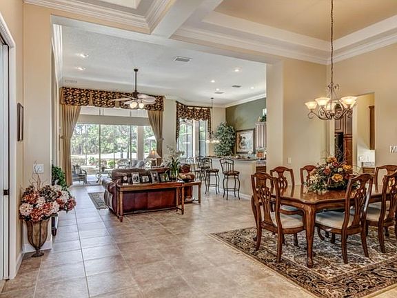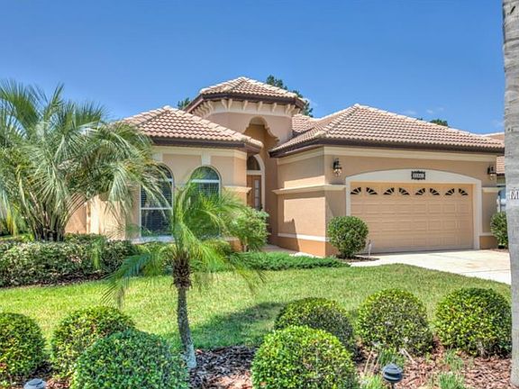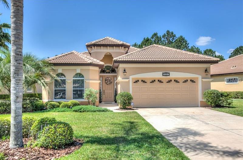 AWC - Taking Backup Offers MISSION INN RESORT & CLUB-Live the resort lifestyle in this beautiful Spanish Mediterranean style home with spectacular views from almost every room of the Las Colinas 10th fairway and green. From the moment you enter the foyer, the openness & light with the amazing views makes you feel you never want to leave. The 12' tray ceilings with rich crown molding, 18" ceramic tile floors, art niches, architectural arches, custom drapery by Saxon Clark, in roof Tech Shield, designer paint finishes inside & out are just a few of the unique features of this home. The great room showcases a built-in entertainment center & opens to the kitchen, breakfast nook & patio. The kitchen has an extended breakfast bar, granite counter tops, 42" cabinets & block glass above the granite back splash. The breakfast nook has panoramic glass picture windows for enhanced views of the pool & golf course. The master bedroom features two walk-in closets, tray ceilings & large picture windows. Master bath has marble, separate His & Her sinks, garden tub & shower. Enjoy the outdoors in your heated salt water pool & spa with pebble tech finish & automated cleaning system. The covered patio with large screened lanai is landscaped for privacy. Oversized lot has mature landscaping & lighting. Garage extended by 6' for golf cart or storage. Mission Inn Resort has (3) restaurants, (2) 18-hole golf courses, tennis, marina, spa, skeet shooting. Only 45 minutes to Orlando attractions. Special: 1/2 off Social or Golf member initiation fee.