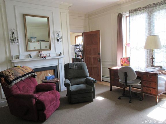 TURN-of-the-CENTURY dramatic historic home, thought to be have been built in the 1890's...as The Agassi House.....the eight fireplaces, in place though functionality is unknown, speak to the stature of the builder and owner of the era. The current owners began occupancy in 1983, at which time the kitchen was remodeled to suit the needs for the Shelter Home. The grand main floor consists of offices and a library, living room and parlor, while the five bedrooms and three bathrooms are on the second floor...potential for a fourth bathroom on this floor....and two more bedrooms and one bath and a living area on the third floor. The home has been well maintained, and the historic features to include woodwork and floors have been preserved. The location is premier, in the heart of the original mining company buildings, from the turn-of-the-century, now occupied by The Keweenaw National Historic Park... and within walking distance of the historic downtown area, with shops and restaurants. The historic Calumet Theater is just a few blocks away, as are numerous art galleries. The preservation of history is a primary focus in this community. The basement is high and dry, thee are electrical panels n each floor, the roof was installed in 2014. All bathrooms are handicap accessible..