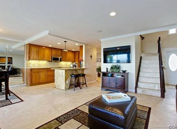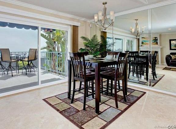 Vacation rental- Ocean Close and Panaramic White Water and Harbor View Furnished Vacation rental. Come and enjoy one of the Best Views in Capo Beach!! This is a true sit down view home with brand new furnishings. You will be amazed by the White water, Harbor, coastline, Catalina views from all main areas of this home. Completely upgraded with travertine flooring in every room, new open and functional custom kitchen stocked with everything you need. The master suite is complete with a king sized bed where you can hear the waves crashing and feel the ocean breezes. Enjoy the ocean view or watch movies from the large flat screen tv across from the cozy fireplace in this master suite. You can even see the ocean and relax from the master suite jetted tub. The master bathroom is remodeled with new dual vanities, travertine shower and an oversized walk in closet. Two full size bedrooms complete with queen sized beds and new furnishings await your guests. Great location in this neighborhood steps away from the pool, spa, tennis and community facilities. Stroll down the neighborhood walking path directly to popular Doheny Beach. This home is a perfect location to relax and enjoy the Southern California beach lifestyle. Summer or winter furnished rental with all utilities included, rates vary based on season. (RLNE1832672)