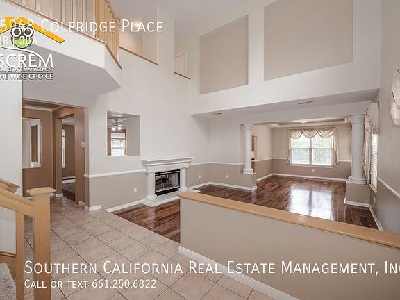 500 off the first month's rent! Special ends October 31, 2024.** Beautiful four-bedroom plus an office, two-story home on a cul-de-sac with mountain views in Stevenson Ranch. A double-door tiled entryway leads to a spacious formal living room with beautiful hardwood floors, cathedral ceilings, and a two-way fireplace. The formal dining room off the living room has decorative columns and hardwood floors. The spacious kitchen has Corian countertops, a center island, recessed lighting, and tile flooring. Kitchen appliances include a gas stovetop, double oven, dishwasher, and microwave. The dining area off the kitchen has a ceiling fan and sliding glass door leading to a huge back patio with mountain views. The family room off the dining area has decorative tile flooring, a ceiling fan, a fireplace, and a built-in bookcase. An office with a built-in desk and shelves opens to the family room. Full bathroom downstairs. Three spacious guest bedrooms upstairs with plush carpeting, mirrored closet doors, and ceiling fans. Full guest bathroom with double sinks. Spacious master bedroom with vaulted ceilings, ceiling fan, corner fireplace, large walk-in closet, and a sliding glass door leading to large deck with mountain views. The master bathroom has his and her vanities, a spa bathtub, and a separate shower. The laundry room has built-in cabinets with granite countertops, a utility sink, washer and dryer hookups, and a door leading to the three-car garage. Conveniently close to shopping, restaurants, schools, and the 5 freeway. * Owner may consider a small pet. *Downstairs window valances have been removed. Application fee of $50 per applicant. No other website can schedule appointments for our properties. * Tenants will need to obtain Renters Insurance. Proof of insurance will be needed at lease signing. DO NOT DISTURB OCCUPANTS PRIVATE PROPERTY - NO TRESPASSING Close To 5 Freeway Three Car Garage Two Way Fireplace