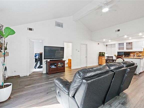 ***Charming Mission Viejo Condo*** This 2 bed 1.5 bath condo features a single-story, open floor plan with an attached 2 car garage and private backyard. The main living space is accented with laminate flooring, vaulted ceiling and a brick fireplace. The open kitchen is complete with a built-in oven/microwave combo, stone countertops, undermount sink and a counter height dining area. The master bedroom features an updated full bathroom and a private patio. The roof was replaced by the HOA in 2020. The home was re-piped with PEX piping in 2021 and there is plenty of storage in the garage and unpermitted loft/attic space. Pheasant Hill is a small community made up of only 20 homes. Residing on the cul-de-sac of the community, this end unit with only 1 shared wall (kitchen) is truly a rare find for Mission Viejo. Conveniently located near the 5 freeway, restaurants and shopping.