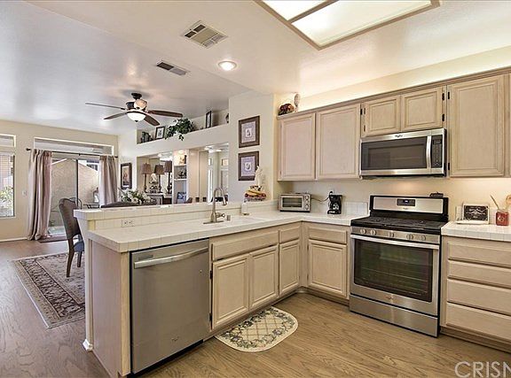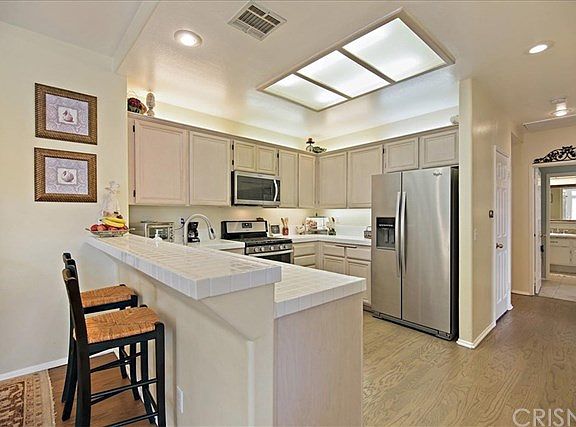 Just the right blend of comfort and style in this desirable gated community! Best location! This upper unit home features rich hardwood flooring, 2 bedrooms, 2 baths with neutral touches, laundry room, Nest system & newer AC unit! Enjoy the charming fireplace in the family room with recessed lighting and tile flooring. The dining area is off the kitchen with built in shelving, ceiling fan and slider to the quaint patio! Nice open kitchen which features newer stainless steel appliances, tile counter tops, a breakfast bar, ample cabinetry and wood flooring. Mirrored wardrobe and ceiling fan in master. Updated sink and faucet in both bathrooms with tiled showers.