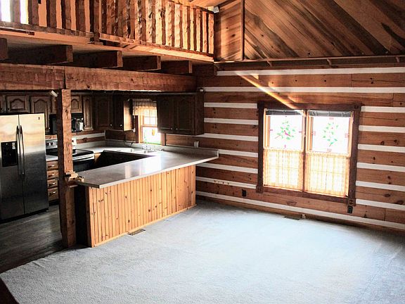 YOU ARE GOING TO LOVE THIS RUSTIC LOG CABIN FOR A WEEKEND GETAWAY OR YEAR ROUND LIVING! HAND HEWN LOG HOME BUILT IN 1994... 3BR/3BATH... 2 STORY LR WITH CATHEDRAL CEILING... FULLY EQUIPPED KITCHEN WITH LOTS OF COUNTER SPACE + AND ROOM FOR BAR STOOLS AND DINING SET... BEAMED LOFT... LARGE L-SHAPED FR IN WALKOUT BASEMENT(1C GARAGE DOOR REMAINS AND YOU COULD REMOVE CARPET IN THAT AREA TO USE AS GARAGE AGAIN)...3RD BR/DEN HAS CLOSET NEXT TO IT... LARGE SCREENED PORCH OFF KITCHEN... CIRCULAR DRIVEWAY...NORTHERN LAWRENCE COUNTY!