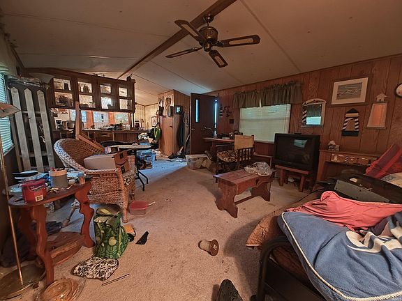 LAKEFRONT HOME ON SOUTH MUD LAKE - Over 70' of frontage right on the water! 2BR mobile home with many possibilities. 938 SF with great open concept room layout. Eat-in kitchen with appliances and plenty of cabinetry. Large full bath with soaker tub and shower. Yard is overgrown, but could be absolutely beautiful. 2-car detached garage and excellent views of the lake. Quiet street with no through traffic. Knoll Drive.