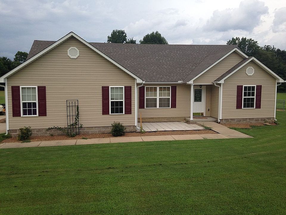 3BDR 2bath Vinyl Siding 1300 SQ. Feet 2 car garage.36x24 pole barn shop.Concrete driveway Open Floor plan Fenced in backyard amidst 4.89 acres.Nice neighborhood Excellent School Systems Westover Elementary Lexington High School or Scotts Hill High School