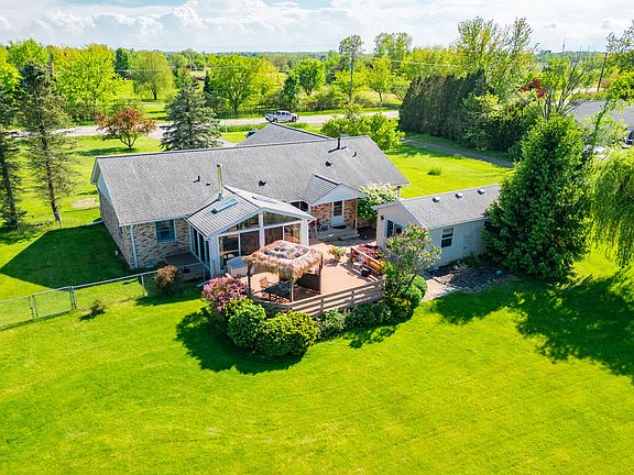 This 3 bedroom, 2 full bath ranch is the perfect home with office and 3600 ft.² pole barn. Whether you have big equipment to park and maintain or cars and boats to store, this home has it all! View of the pool from the office building just outside the kitchen door and relax on the large deck with tiki bar at the end of the day. All this plus 4 acres to roam, play, garden, etc. Easy access to freeways and much more.