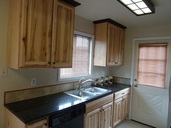 LIKE NEW INSIDE. Updated and remodeled inside with granite kitchen counters, beautiful tile baths and showers, new floor coverings, and beautiful new refrigerator. Located near hospital and interstate access. Brand NEW hi-efficiency gas furnace paired with a thermostat controlled gas fireplace in basement family room. 4 Bedrooms and two remodeled baths plus a storage area, large yard, and two car garage. Seller will install a fence with an acceptable offer.