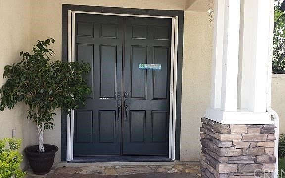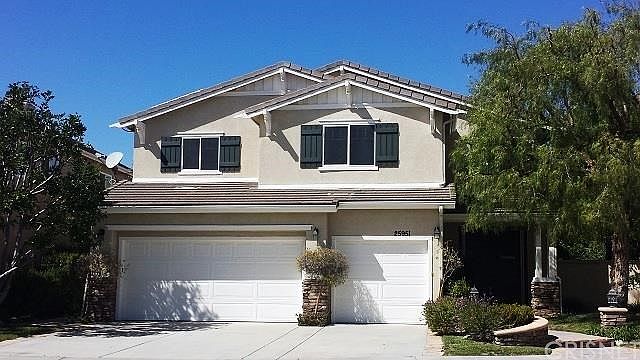 MODEL-CONDITION HOME WITH LOTS OF UPGRADES & PRIVATE ENTERTAINER'S BACKYARD boasts sparkling pool with slide, spa, trampoline, built-in BBQ, artificial grass, and dog run on 6,971 sq. ft. corner lot! Located in one of Stevenson Ranch's most prestigious and sought after neighborhood executive estates. Double door entry leads into a light, bright, and move-in ready 2,866 square foot house that has 4 generously sized bedrooms and 3 baths. Formal living / dining room has cathedral ceilings with dramatic staircase. Bright gourmet kitchen with stainless steel appliance, huge island, recessed lighting, desk, built-in refrigerator, separate informal seating, tile floor and open to the family room. Large dramatic flagstone fireplace, custom built-ins adorn the enormous carpeted floor family room with walk-in closet. Huge master suite offers cozy sitting area overlooking backyard, large, private remodeled bathroom - huge tiled shower, jacuzzi tub, dual vanities & dream walk-in closet. Generously sized bedrooms -2 with walk-in closets. Walking distance to award winning Stevenson Ranch Elementary, parks - tennis courts, basketball court, baseball field, kids play area, and walking path.***SOLAR PANELS THAT ARE PAID FOR WILL ALLOW FOR LITTLE OR NO ELECTRICITY BILL***
