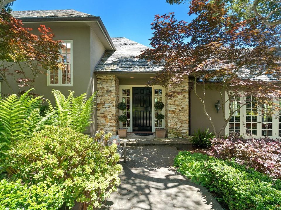 One of a kind estate in Carmel. Extremely private and completely fenced front and rear yards. Tthe grounds surrounding this house are stunniing. The rear yard is filled with light and runs all the way east to a waterfall/fish pond backing to Mission Trails. The front of the house is surrounded by mature oaks. Downstairs holds the master bedroom, office and an additional bedroom/den. Upstairs has another sitting room and two en-suite bedrooms, a T.V. nook and large bonus room. So many hard to find amenities- a huge entertaining living room, three fireplaces, beautiful slate roof and oversized two car garage, Located just half a mile from downtown Carmel.