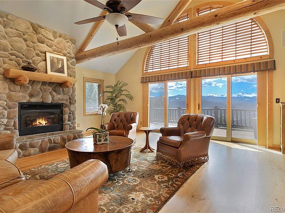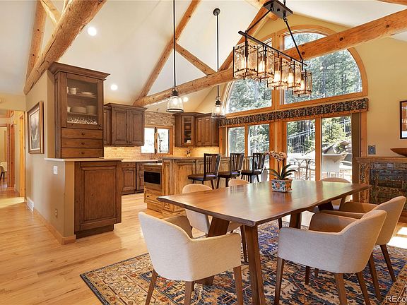 Colorado Mountain Living at Its Finest! Experience the perfect blend of luxury, tranquility, and nature in this stunning custom log home on a private 4.33-acre lot with Jaw-Dropping views! From the moment you wake up, you'll be captivated by Mount Blue Sky's ever-changing beauty, whether framed by clouds, dusted in snow, or glowing in the morning sunrise. The open-concept design creates a warm and inviting atmosphere, with a grand living room featuring a floor-to-ceiling stone fireplace, soaring log beam ceilings, and a wall of windows that showcase breathtaking mountain views. Gorgeous ash wood floors add warmth and elegance, seamlessly connecting each space. The chef's dream kitchen features high-end appliances, custom cabinetry, and designer finishes, making it the perfect space for culinary creativity. The main-level primary suite is a true retreat, offering stunning mountain views and a spa-like ensuite designed for relaxation. Step outside onto the expansive deck, where you can take in views of Evergreen Lake and Evergreen Golf Course or enjoy the peaceful surroundings as wildlife roams freely through the yard. Deer, elk, chipmunks, and birds are frequent visitors, and every spring, hummingbirds return, hovering by the windows as if to remind you to put out the feeder. There is also a spacious fenced area, ideal for pets. Living here means having access to miles of scenic hiking trails just outside your front door, allowing you to explore the beauty of the mountains at a moment's notice. In just 10 minutes, you can be in Downtown Evergreen at the Lake, ice skating in the winter, kayaking in the summer, or a leisurely walk along the shoreline. Or be in Denver in 45 minutes and an hour from world-class ski resorts. Whether you are seeking a peaceful retreat or an active mountain lifestyle, this home offers it all!