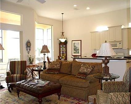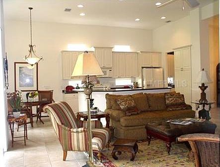 This beautiful home has the open floor plan you have been looking for on Las Colinas golf course at the Mission Inn Resort and Club. The gourmet kitchen features solid surface counter tops with integrated double bowl sink. 42" upper cabinets are plentiful. Kitchen includes a breakfast bar as well as a breakfast room. Adjoining the kitchen is an open living room with 12' ceilings. Tile floors expand from the kitchen, living room into the dining room, second bedroom and foyer. The floor plan lends itself to entertaining. A dry bar connects the kitchen to the dining room. The master suite features two closets of which one is a walk-in. Dual sinks and a walk in shower are featured in the master bath. The third bedroom may be used as either a den/or office also. Enjoy the beautiful views of the golf course and pond from the screened lanai, master bedroom, living room, breakfast room and kitchen. All of the furniture and furnishing are for purchase also. Brokered And Advertised By: MISSION INN REAL ESTATE, INC. Listing Agent: JANET PRATT