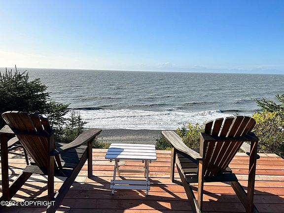 Cook Inlet Dreaming! Inlet and Mountain views on 2.6+ acres of beachfront property with stairs to the beach. Meticulously kept custom cedar home with all new paint and carpet throughout, 6 new windows downstairs. Southern exposure w/ multiple decks to enjoy the view. Featuring detached 864 sq ft shop, dry cabin, a wood fire sauna, 2 sheds, RV parking pad and more. 2022 Appraisal $495K. Cash Only!2 Bedrooms, 2 Bathrooms and 2 bonus rooms (one upstairs off master bedroom and one downstairs at the end of the hallway by the garage.) Living and dining room got 6 new windows October '22. (Not the slider.) Stunning Tongue and Groove Vaulted ceilings with exposed beams and T&G cedar wainscot in living, and dining areas. Kitchen has granite countertops and tile backsplash and was remodeled in 2010, bathrooms remodeled in 2007. Woodstove in living room with wood access hatch to the wood shed for easy stacking. Landscaping features include lilac and Mayday tree, strawberry patch, multiple perennial flower beds (Delphiniums reach 8+ feet tall!), charming greenhouse and so much more. Attached garage is heated and has a murphy bed in the wall as well as a dog kennel area with a door to the outside dog yard for your furry friends. Detached shop has a large mezzanine for storage and plenty of shelves for tools and treasures. There is a dry cabin with a bed and small deck next door to the sauna and another shed used as a bunk house during fishing season. This home has hosted two beautiful weddings and would make an excellent event venue or AirBnB! There is so much potential and many more years of memories to be made. ***Listing Licensee is related to the sellers.***