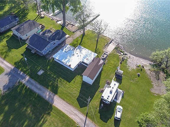 Your lakefront retreat awaits you with breathtaking views of Fox Island and 100+/- feet of waterfront on Lake Ontario. Whether you like to go bass fishing or bask in the sun, with some love and attention (water damage from roof leak) this 3 bd 1 bath cottage has potential to be an amazing retreat for the whole family. Property comes with second lot (Tax ID 70.05-1-6.5.) directly behind with 2 garages for additional storage. Both have newer roofs that are 2 yrs old. Boat house with 2 yr old roof has electric winch and dock system that goes out 75ft. 2 Boat lifts included. Newer rebar break wall. Septic System 3 yrs old. Brand NEW water pump and h20 tank. NEW Windows and slider. Electric wall heat. Wood burning stove. Property being sold AS IS