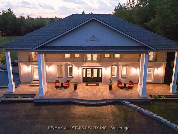 10-Acre Property. Resort-like pool and entertainment area. $$$. Spent On Renovations Inside And Out. Over 5000 Sq.Ft., 20 Ft Ceiling Hallway With Tervanian Stone Floors, Dramatic Stairs, Coffered Ceilings, And Moldings. A Stunning Kitchen With B/I Appliances, Large Stove, And Fridge. Wait Until You See The heated floor Great Room, with B/I Bar and W/O to Deck and Cathedral Ceiling: 5 bedrooms, 5 washrooms, rounded corner drywall, office or in-law suite on the main floor. Heated salt water pool, Water softener with UV light, renovated Bunkie for the kids in the backyard, and your private winter fun skating pond. The outdoor Barbecue and fire pit are gas-connected.