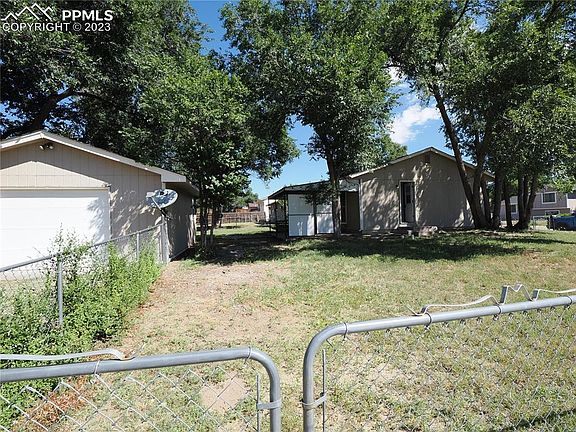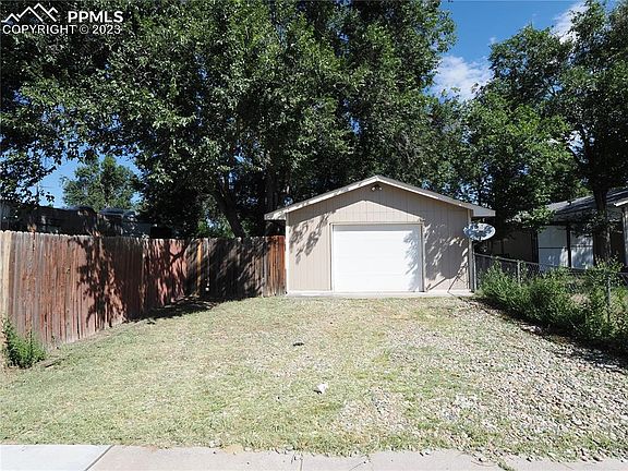 Huge corner lot with detached oversized one car garage. This three bedroom one bath ranch home with new carpet features a covered back patio as well. The living room has double entry into the kitchen and dining area that has a side entrance used for easy access to and from the oversized detached garage. The kitchen and dining area also has a sliding glass door to the covered back patio which is perfect for entertaining. The bathroom is also home to the washer and dryer. The master bedroom with ceiling fan sits in the back of the house. The two additional bedrooms are in front facing Barkman. The home sits back on the lot so it has a large front, side and back yard. Double gate near the garage with potential to park trailer or RV off the street. Easy access to Academy Blvd and Powers Blvd by way of Astrozon.