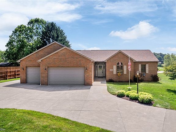 Welcome to this custom built and sprawling all brick ranch located on a beautiful lot. This inviting abode offers three nicely sized bedrooms and three full baths. The oversized great room boasts a beautiful gas fireplace and bamboo flooring. The kitchen has cherry cabinetry, black appliances, and has ample counterspace. The dining area has sliders that exits to the stamped concrete patio with a pergola. There is also an additional living room that overlooks the stunning backyard. The basement is huge and could easily be finished for a rec room. There is already a full finished bathroom in the basement. All of this plus a 3 car attached and heated garage and a separate shed. This home has been lovingly maintained and is awaiting a new owner. Updates include roof in 2022 and HVAC in 2023. This one is a show stopper. Call to schedule a showing today to make this your new address!!