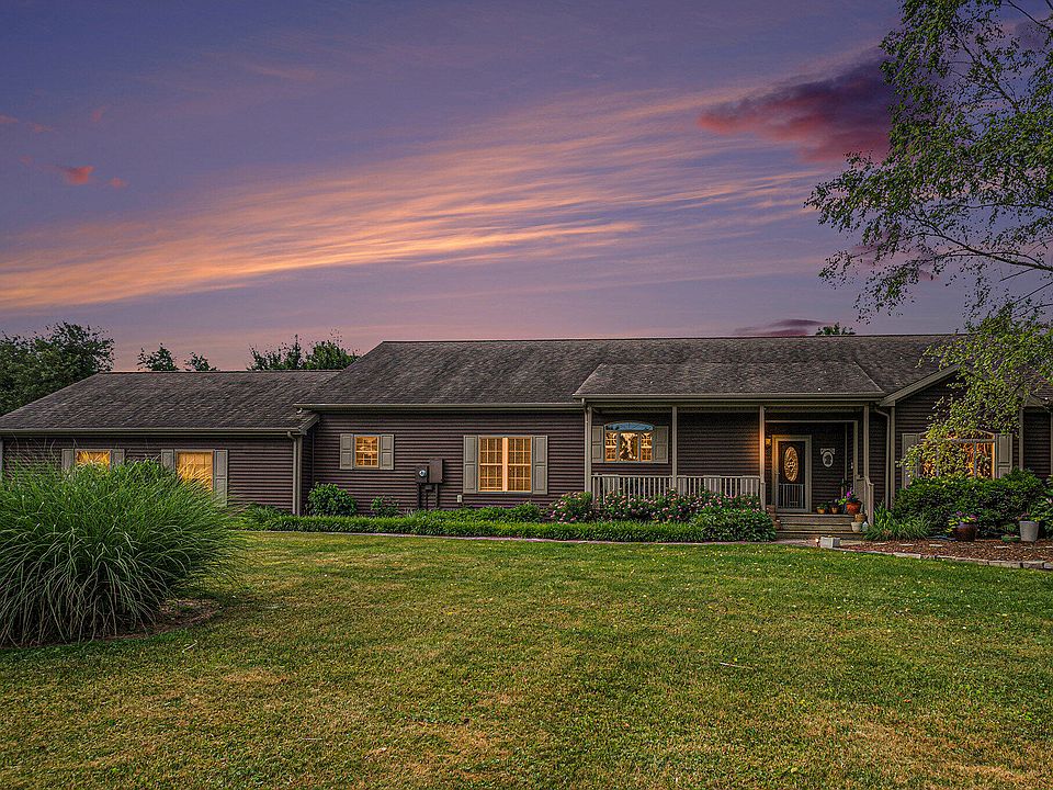 Peace and serenity abound on this beautiful country retreat, which includes 3.26 acres of woods, fruit trees, koi pond and gorgeous landscaping! The 15'x30' cottage could be finished and used as a vacation rental, with its running water, electricity, two lofts, and insulated back room! Wander around the property and find a shaded picnic area, a fire pit and woods with a tranquil clearing. In the front yard is an abundance of fruit trees (apple, pear, peach, plum, cherry and pawpaw) and an asparagus garden. Enter the home through the front foyer and marvel at the high ceilings and spacious open floor plan. Step into the large kitchen with newer stainless appliances, an island and ample cabinetry. Gaze from there into the open living area and dining area with tray ceiling. Two sets of extra wide sliding doors lead out to the huge deck, which is reinforced for a hot tub and includes a natural gas grill, sturdy gazebo, and wooden railing. Step back inside where you will find the private primary suite, complete with ensuite bathroom featuring separate shower and soaking tub as well as double vanity and sinks. On the opposite end of the home are the second bedroom/office, second full bathroom, third bedroom and laundry room equipped with a dog shower, sink and plenty of cabinets. Just outside the laundry room is the insulated and heated two and a half car garage. The Owners spared no expense on the unique fans and lighting, tankless water heater, an extra tall, vented crawl space with a sump pump and extra insulation, plus extra insulation in the attic. You could consider this amazing property for your primary home or your summer home, with prime location in Galena township and the highly sought-after New Prairie United School District. Only an hour and a half from Chicago, very close to major highways and only about 15 minutes from Laporte, Michigan City, South Bend, New Buffalo and wonderful beaches, shops and restaurants.