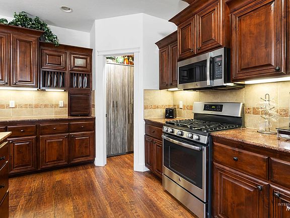Location, location! This beautifully upgraded 3-bed, 2-bath home features an open great room floorplan with a cozy stone gas fireplace, engineered wood floors, and custom crown molding. Recent updates include a newer HVAC system and fresh interior/exterior paint. The spacious kitchen boasts granite countertops, stainless steel appliances, and a walk-in 12x11 pantry for storage and prep. The master bath offers heated tile floors, a separate shower, and a relaxing jetted tub. A 3-car garage provides plenty of space with built-in cabinets and added 220v for EV charging. Enjoy breathtaking views of a 6-acre park with NO rear neighbors, ensuring privacy and tranquility. With over $120K in upgrades inside and out, this home features low-maintenance landscaping with mature trees, plants, roses, and a custom courtyard. Centrally located near The Village, restaurants, and shopping, this home perfectly blends convenience and modern elegance. HOA maintains weekly yard care and seasonal clean up in front and back yard.