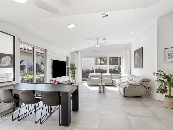 Designed with the highest quality in mind, this contemporary, 3BD/2.5BA fully remodeled home is the pinnacle of Boca living in Broken Sound Country Club. The home's clean, luminous design is expressed through impeccably appointed bedrooms and updated baths, all-new gourmet kitchen, new floors throughout, private pool/backyard, all new Hurricane Impact windows & doors, including a renovated garage with impact doors, and newly painted interior. ALL HURRICANE IMPACT WINDOWS, DOORS & GARAGE. Fully Renovated Interiors: Rectified Porcelain Tile throughout, Zebra Window Blinds, Renovated Kitchen w/Stainless Steel Appliances, White Quartz Countertops, Waterfall Edge, Custom Cabinetry w/ample storage. Newly Renovated Bathrooms, Dual Sinks, Frameless Showers. New LED Lighting throughout, includ. light fixture in Garage. 2021 AC, Vents and Smart Fans. Smart Ring Bell