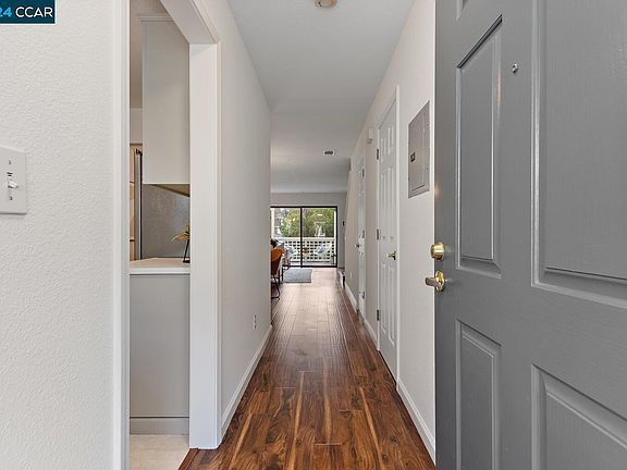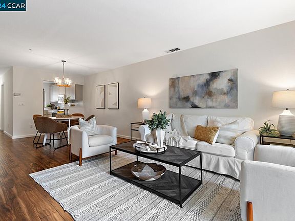 This spacious, two-level Ashford Court condo is beautifully appointed in an ideal location to enjoy all the perks of urban-suburban living. Rich, engineered hardwood floors run throughout the home. The kitchen offers abundant natural light, stainless steel appliances, and freshly painted cabinets. An inviting fireplace makes the large, open living room perfect for relaxing or entertaining. On the far side of the room, a sliding glass door leads to a spacious patio overlooking mature trees. The primary bedroom also features an intimate balcony with views of the lush landscaping. The secondary bedroom offers its en-suite bathroom featuring a shower over-tub combination. This unit includes access to a pool and a one-car garage. The home is adjacent to Walden Park and the Iron Horse Trail and minutes from top-rated schools, freeway access, Walnut Creek and Pleasant Hill BART stations, and Walnut Creek’s thriving downtown.