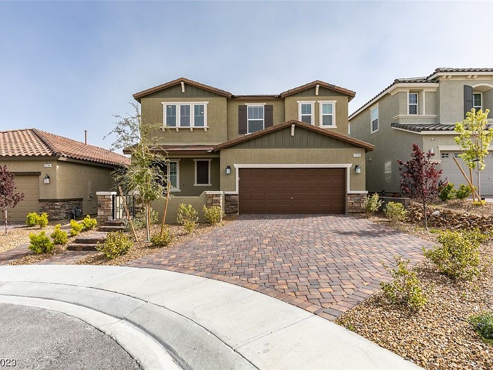 Located in the desirable and growing community of Inspirada, this gorgeous home is more than 3,000 square feet and features five bedrooms and three-and-a-half bathrooms. Just like new, this home has been lived in for less than two years and features more than $45,000 in builder upgrades including ceramic tile floors, plush carpeting, quartz countertops, whirlpool appliances, a primary bathroom with a spacious spa shower and separate oversized soaking tub and a bedroom downstairs with an en-suite bathroom. Located at the end of a cul-de-sac, this home provides plenty of privacy including in its fully landscaped backyard.