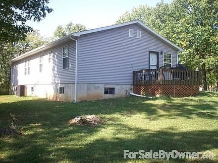 Full concrete basement has walk-out door, 24x26 2-car garage. First bathroom has walk-in shower, garden tub, laundry and walk-in closet. Large great room, kitchen has lots of cabinet space and Whirlpool dishwasher. Dining room has lots of windows. Central air and propane furnace was installed new in 2006. 24x40 Morton building has concrete floor, 2 garage doors in front and one in back and walk-out door in side. 18x26 Carport and 8x10 Wood Storage Building. Very nice home and land with lots of trees and wildlife at the end of Whispering Oaks Road. Home is located just over a mile from east side of Pomme de Terre Dam and boat launch. 35 miles to Lake of the Ozarks, Stockton Lake and Bennett Springs State Park. For Sale by Owner HOME # 417-745-6400 Cell # 417-399-3104 Ask for DarellAdditional property info: http://www.forsalebyowner.com/listing/3-bed-Single-Family-home-for-sale-by-owner-RR-2-Box-2596-65668/23938712?provider_id=28079