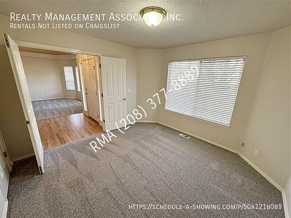 Come find this beautiful 4 bedroom, 3 bath home located in south Meridian. This home features hardwood floors, vaulted ceilings, gas fireplace and a beautiful private deck off the master bedroom. New carpet throughout! Master also features a jetted tub and walk in closet. The master bedroom has a back yard balcony walk out with fantastic views of the neighboring mountains. The kitchen is fully stocked with appliances. There are laundry hook ups in the laundry room off the garage. The back yard is extensively spacious with a covered patio area, trailer parking, and great landscaping. This property is only available for a 6-month lease, there is not a guarantee of an extension Property Liability Insurance Required. Tenant is responsible for all utilities. This is a No pet property. This property is located with-in the Salmon Rapids Subdivision and subject to the residential rules of the HOA. For questions about HOA rules or the CC&Rs please reach out to the HOA management:. Alden Holm & Company.