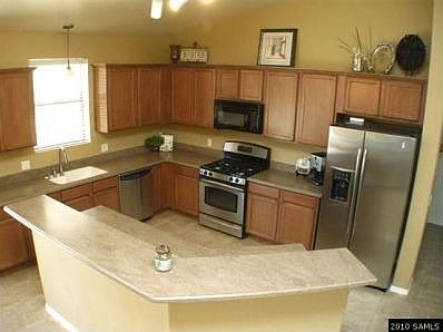 Looks New with Attractive Architecture and a CLASSY FEEL and MOUNTAIN VIEWS!!!! 4 Bedrooms,2 baths, Utility Rm, Fully landscaped, Great Room with Fireplace. Beautiful Corian Countertops that look like concrete. Fireplace is plumbed for gas but homoe owners preferred wood. The master suite includes a large bedroom and bath with a garden tub, separate shower and nice closet. 4th bedroom is currently used as an office and music room with French Doors. Home is on a large lot with a large bac
