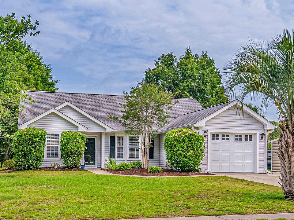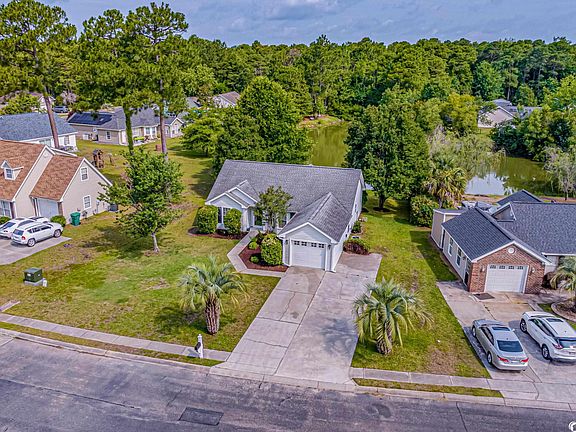 This adorable home had beautiful upgrades you will want to see! It has tasteful landscaping with 2 palms in the front yard, some fresh sod and situated on a beautiful lot overlooking a lake. The backyard of this home is very private. Inside the home has gorgeous wood look tile throughout the entire home and fresh paint. The updated kitchen has all new gray cabinets with a new stove and new microwave in 2023 and newer refrigerator and dishwasher in 2022 plus beautiful granite counters. The spacious family room has a vaulted ceiling that leads to the screened-in porch that has new screens and overlooks the lake. The primary bedroom features a tray ceiling and walk-in closet and the bathroom has newer vanities with granite tops and a designer mirror. The home has a split bedroom design with the 2 guest rooms on the opposite side of the home and share the 2nd bathroom that also has a granite top and framed mirror. The home has some newer light fixtures and a ceiling fan in the family room and primary bedroom. The garage has a new garage door and opener plus cabinets inside the garage for added storage. The home is a short distance to Forestbrook Elementary and Forestbrook Middle schools. The neighborhood has sidewalks and a community pool. Nearby the community you will find excellent shopping areas such as Tanger Outlets, grocery stores, medical facilities and delicious restaurants. Myrtle Beach International Airport is only about 8 miles away and beautiful sandy beaches are less than 10 miles away! Schedule to see this home right away!