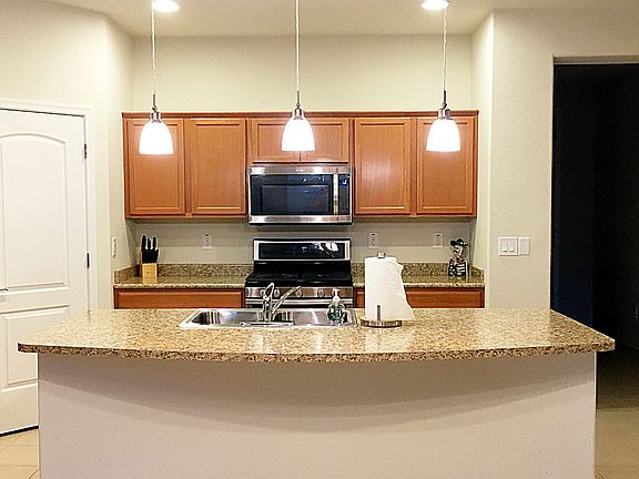 This home welcomes you from the street with beautiful stone frontage, earth tone colors, and desert landscaping. This wonderful home offers a split floor plan which provides extra privacy to the master suite. An open floor plan through the spacious kitchen, eat in dinning room, and bright living room space with built in entertainment system. A bonus room at the front of the home has so much potential. It can be used as an office, den, formal dinning room, billiards room or whatever your heart desires. The master suite has a beautiful bay window extension to allow more light, a private bath suite with own linen closet and a spacious walk in closet. This home also has pre-wiring for speaker system, pre-plumbing for sink in laundry, and pluming for water softener.Refrigerator conveysOWNER/AGE