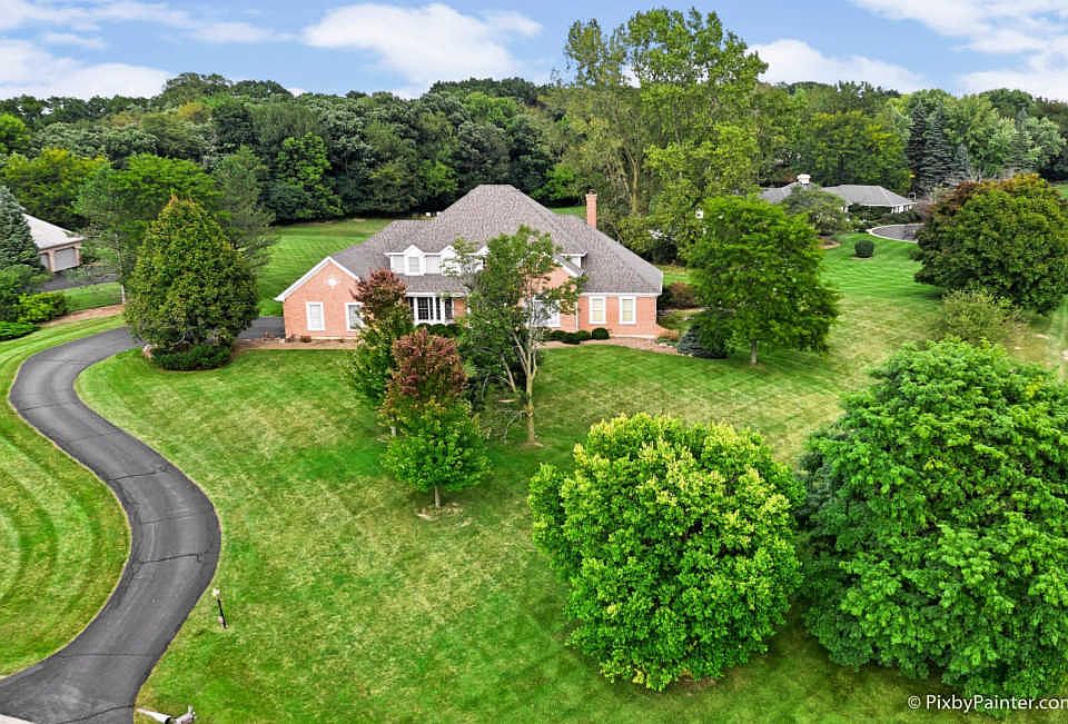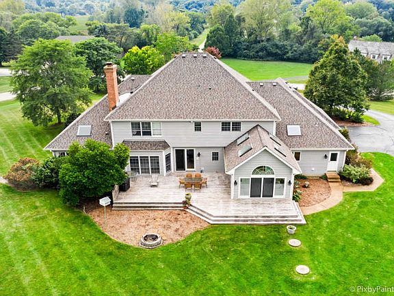Enjoy the beautiful views from this stately 4 Bedroom, 5.2 bath home nestled hilltop on 2 acres. 4135sf of living space, plus finished English basement. 9ft/volume ceilings throughout this home. 1st Floor Master suite, spacious Family Room with wet bar and huge main floor Office, so you can work from home in peace. Island Kitchen with 48 inch cabinetry, stainless, granite and informal dining area. Enjoy all the sunlight streaming into the bright & cheerful year round Sunroom off the Kitchen featuring french doors opening to huge flat back yard. Separate formal Dining Room and 1st floor Laundry complete the main floor. Dual staircase to the 2nd floor includes 3 more generous sized bedrooms, all with private Baths (one of them is like a 2nd Master). Full English basement with huge bar, Rec Room and full Bath. 3C side side load garage. Quiet cul-de-sac location. New roof 2019.