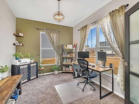 Multiple offers received. Highest and best due no later than 7:00 pm Sunday March 2nd. Discover your dream home in this beautifully detailed 3 Bedroom, 2.5 Bath two story with 3 car attached garage and recently finished basement. In addition to offering attractive decor and finishes, you'll appreciate numerous updates that include being freshly painted throughout plus all new fixtures & new electric fireplace providing modern touches. French doors have been installed on the Den creating a private Home Office. You'll fall in love with the Kitchen boasting stunning black cabinets enhanced with crown molding, upgraded stainless appliances, new garbage disposal, island under pendant lighting, gorgeous glass backsplash all highlighted with recessed lighting. Between the Kitchen and Living Room, there is a spacious Dining Area with adjacent sliding glass doors leading to the back patio & generous fenced yard. The new Pergola creates a great outdoor space for entertaining. Your Upper Level has 3 carpeted Bedrooms including the Owner's Suite. Ensuite Bath has double bowl vanity (cabinetry matches the Kitchen), double shower & linen closet. The newly finished Basement provides additional living spaces with LVP floors & utility room with brand new water softener. Nice sized Laundry Room includes washer, dryer & utility sink. Once you view this charming move in ready home, you'll absolutely want to call it your own!