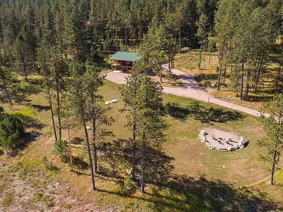 JUST RIGHT! Amazing Custom Built Log Cabin in the woods! Private setting against USFS lands. 4.34 acres. Great view! Custom built amenities throughout - custom cupboards, railings, wood work, covered deck, and much more. The great attention to the details. Comes completely furnished so walk in, sit down, and enjoy! Very efficient well thought out floorplan. Wonderful lot with a firepit area to relax and enjoy your own little piece of Black Hills Heaven!