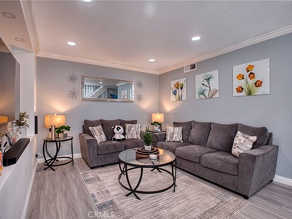 Welcome to this turn-key, very clean and stunning condominium in the quiet community of Mission Viejo. This exquisite home was just recently remodelled from top to bottom. Water heater is brand new and appliances (refrigerator, gas range/oven, microwave, washer & dryer) were all acquired within a year. Recessed lights were installed in the kitchen, living room, hallway and bedrooms. There's a dazzling chandelier hanging from the ceiling by the stairway. Impressive built-in shelves with stone accents in the living room. Both spotless bathrooms were upgraded with a bonus of built-in bluetooth speaker in the downstairs bathroom. The kitchen has new cabinets, drawers, countertops, sinks and backsplash. The upgraded patio with stone flooring is perfect to hang out and relax. There's one car attached garage with an epoxy flooring and one assigned parking. This peaceful condo combines with luxury and convenience, making it an ideal choice for discerning buyers. Don't forget to check the community's beautiful pool too.