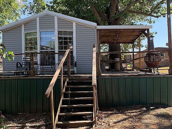 home on the lake in Cayuga Park Resort. Near Iron Horse on the Elk River arm of Grand Lake. Beautifully remodeled in the last two years. New siding, new skirting, new roof over front porch, new paint throughout, new kitchen cabinets, new light fixtures, and new luxury vinyl flooring from back to front. Brand new 3 ton condensing unit. This home has lake views in a quiet mobile home community. Boat ramp less than 200 yards away. The park has a large boat dock with approximately 20 slips with potential to rent as they become available. Also has an enclosed fishing dock. Two storm shelters on site. This home also comes with its own 500 gallon propane tank. Lot rent is $285 per month which includes water, sewer, and trash. $50,000. No owner financing or rent to own. Property can be shown by appointment.