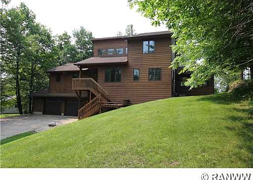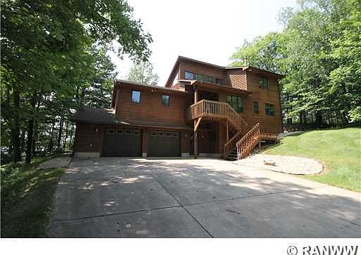 Southern exposure with expansive lake views, sugar sand frontage with medium elevation. 3 story home, private with city amenities. Open-concept floor plan with a recently updated kitchen. Natural light throughout the home, large master suite with decking overlooking the water's edge. Sunroom with lakeviews for entertaining. Come enjoy over 1100 acres of crystal clear water on one of NW WI most desired lakes. Priced to sell!