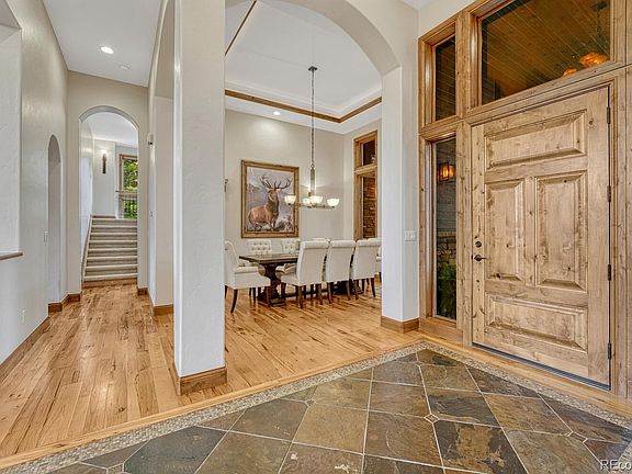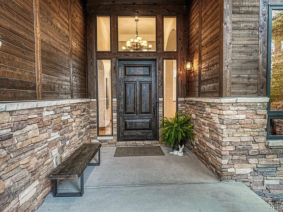 The gourmet kitchen boasts granite counters, large island, and high-end appliances, perfect for culinary enthusiasts. Unwind in the master suite, complete with a steam shower, double sided fireplace, and a private deck. The upper level boasts a bonus room/second study with an ensuite bath. Retreat to the lower level and you will find a walkout basement complete with a wet bar, wine cellar, sauna, exercise room, and two additional guest bedrooms. Knotty alder 8 ft doors and trim can be found throughout the house as well as custom cabinetry. Enjoy outdoor tranquility with a pond, live koi fish, and waterfall. Embrace modern luxury with new cedar siding and state-of-the-art amenities, and just 2.5 miles from downtown Castle Rock this home is sure to impress the most discerning buyer.